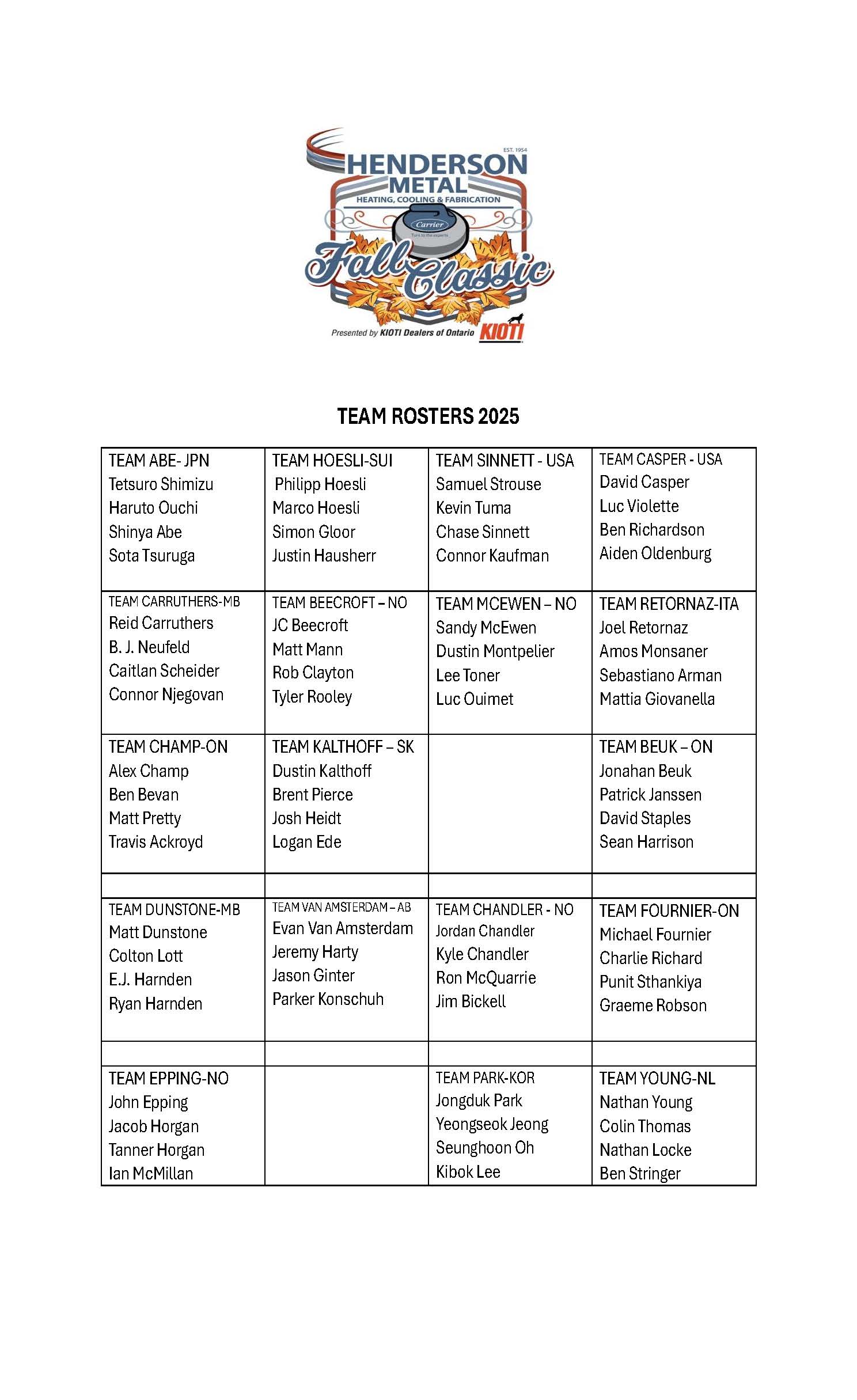 Experience the thrill of live curling at the Henderson Metal Fall Classic, presented by Kioti Dealers of Ontario! Watch as top teams battle it out on the ice in a weekend of fast‑paced action, intense competition, and unforgettable moments. Join us in the heart of Sault Ste. Marie and be part of the curling community at the Soo Curlers Association